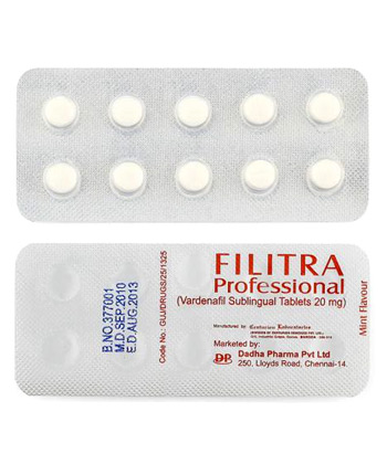 - Filitra Professional est utilisé pour le traitement de la dysfonction érectile. Le médicament contient du vardenafil, qui agit en augmentant le flux sanguin vers le pénis lors de la stimulation sexuelle.